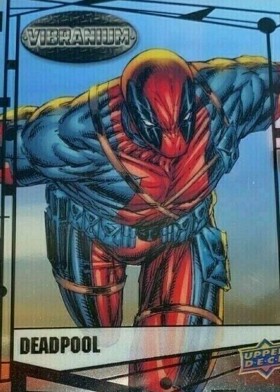 This card is 1 of 6 Deadpool's card variations in the 2015 Upper Deck Marvel Vibranium set being tracked by Sports Card Investor, including Raw Vibranium, Molten Vibranium /299, Refined Vibranium /99, Radiance Vibranium /50, and Vibranium Bar /5.