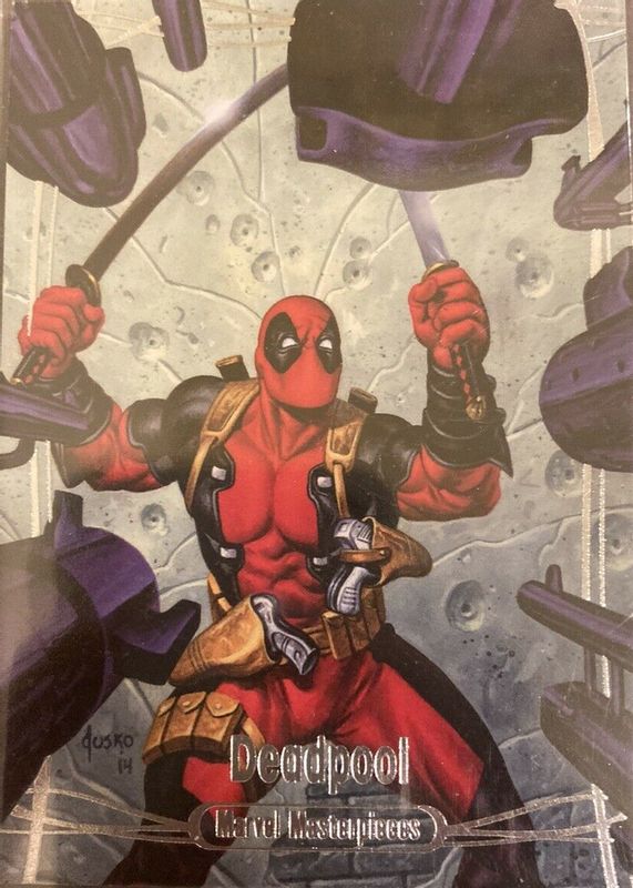This card is 1 of 6 Deadpool's card variations in the 2016 Upper Deck Marvel Masterpieces set being tracked by Sports Card Investor, including Gold Foil Signature, Epic Purple Foil /199, Orange Foil /99, Speckle Holofoil /99, and Holofoil.