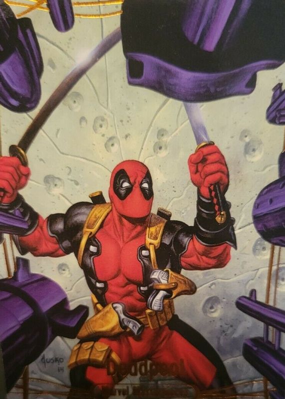 This card is 1 of 6 Deadpool's card variations in the 2016 Upper Deck Marvel Masterpieces set being tracked by Sports Card Investor, including Base (/99), Gold Foil Signature, Epic Purple Foil /199, Speckle Holofoil /99, and Holofoil.