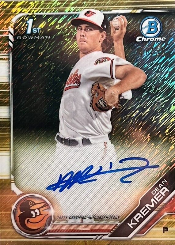 2019 Bowman Chrome Gold Refractor Dean Kremer Autograph 36/50 Baltimore Orioles