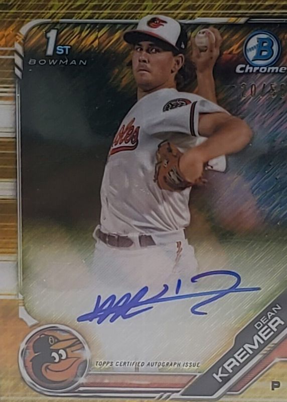 2019 Bowman Chrome Dean Kremer Gold Shimmer Refractor Auto #19/50 Orioles