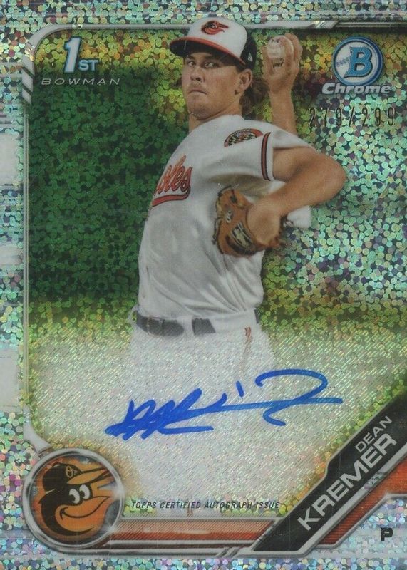 2019 Bowman Chrome 1ST SPECKLE REFRACTOR Dean Kremer #/299 RC AUTO - ORIOLES