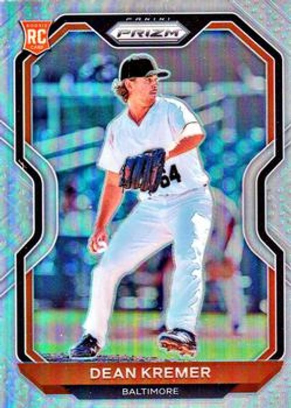 The Dean Kremer 2021 Prizm #232 Silver Rookie card is 1 of 70 Dean Kremer's card variations in the 2021 Prizm set being tracked by Sports Card Investor, including Base, Blue, Blue Velocity, Carolina Blue, and Cosmic Haze.