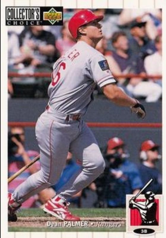 The Dean Palmer 1994 Upper Deck Collector's Choice #580 Base card is 1 of 3 Dean Palmer's card variations in the 1994 Upper Deck Collector's Choice set being tracked by Sports Card Investor, including Gold Signatures, and Silver Signatures.