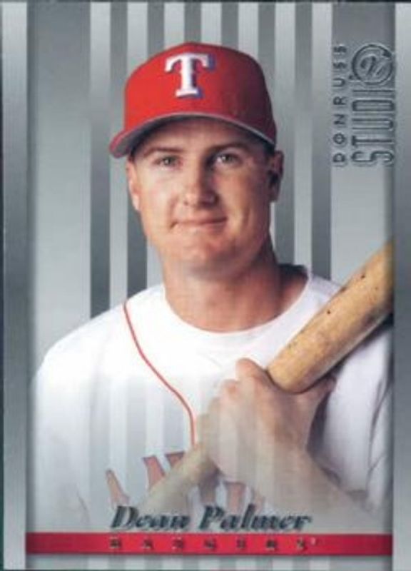 The Dean Palmer 1997 Donruss Studio #24 Base card is 1 of 3 Dean Palmer's card variations in the 1997 Donruss Studio set being tracked by Sports Card Investor, including Press Proof Gold, and Press Proof Silver.