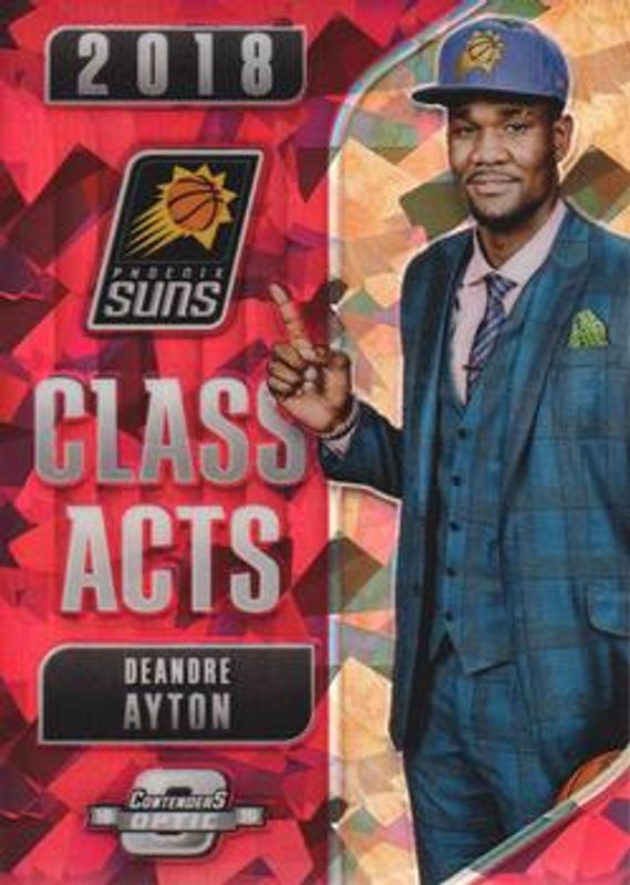The Deandre Ayton 2018 Contenders Optic #3 Class Acts - Cracked Ice Red Rookie card is 1 of 33 Deandre Ayton's card variations in the 2018 Contenders Optic set being tracked by Sports Card Investor, including Red /149, Blue /99, Orange /25, Gold /10, and Gold Vinyl /1.