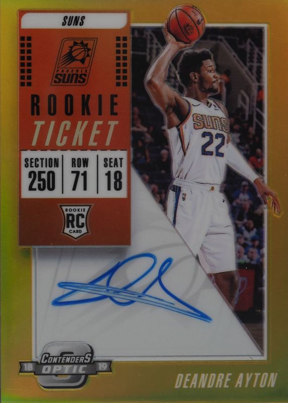 Auctions Ending Soon for Deandre Ayton 2018 Contenders Optic #111 Rookie Ticket Auto - Gold /10 (One Hand on Ball) RAW