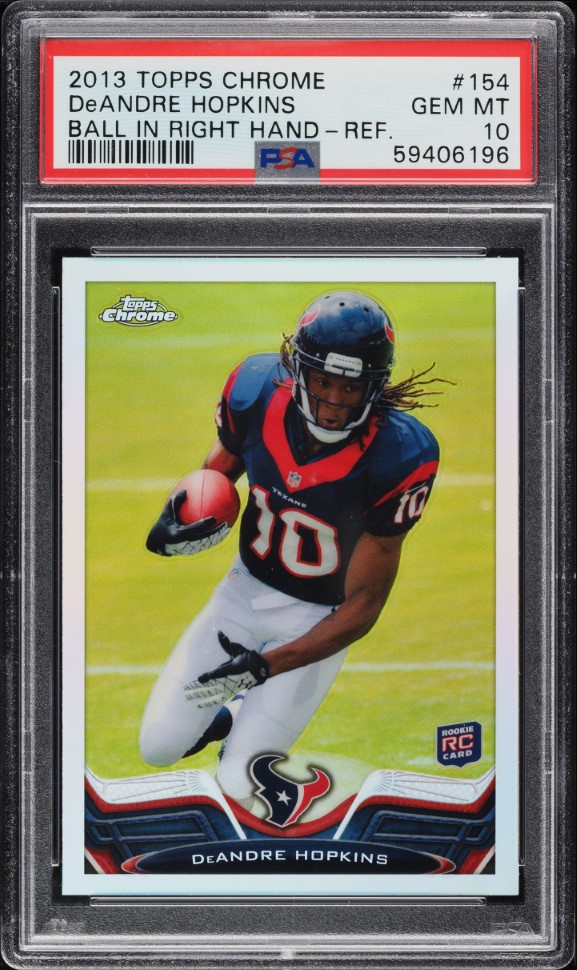 The DeAndre Hopkins 2013 Topps Chrome #154 Refractor Rookie card in Raw condition has moved down -$15.96 (-802%) in the last 30 days and was last sold for $1.99 .