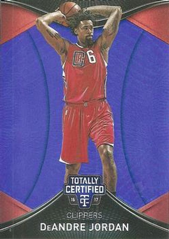 The DeAndre Jordan 2016 Totally Certified #67 Blue /99 card is 1 of 18 DeAndre Jordan's card variations in the 2016 Totally Certified set being tracked by Sports Card Investor, including Base, Red /199, Orange /60, Camo /25, and Gold /10.