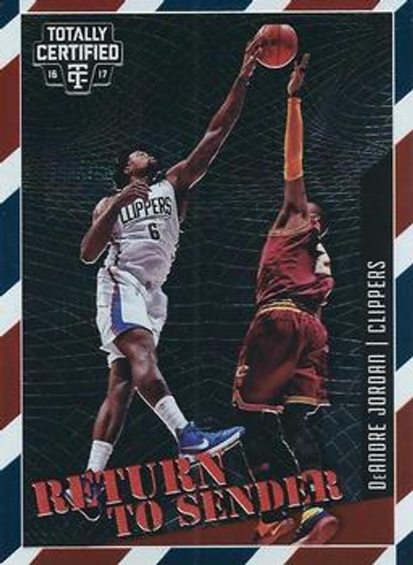 The DeAndre Jordan 2016 Totally Certified #1 Return to Sender card is 1 of 18 DeAndre Jordan's card variations in the 2016 Totally Certified set being tracked by Sports Card Investor, including Base, Red /199, Blue /99, Orange /60, and Camo /25.
