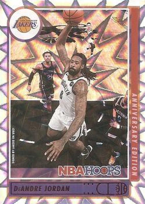 The DeAndre Jordan 2021 Hoops #107 Anniversary Edition card is 1 of 24 DeAndre Jordan's card variations in the 2021 Hoops set being tracked by Sports Card Investor, including Base, Blue, Green Ice, Hyper Blue, and Neon Green.