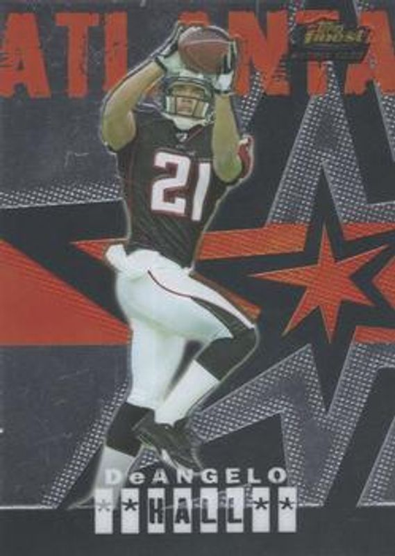 The DeAngelo Hall 2004 Topps Finest #87 Base /399 Rookie card is 1 of 9 DeAngelo Hall's card variations in the 2004 Topps Finest set being tracked by Sports Card Investor, including Refractors /199, Uncirculated Gold X-Fractors /150, Gold Refractor /50, X-Fractor /5, and Printing Plate Black /1.