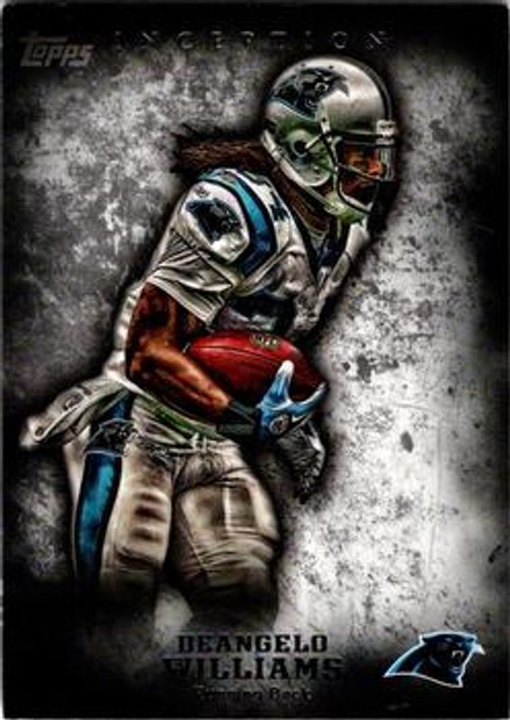 The DeAngelo Williams 2012 Topps Inception #72 Base card is 1 of 10 DeAngelo Williams' card variations in the 2012 Topps Inception set being tracked by Sports Card Investor, including Blue /150, Gold /99, Green /50, Red /25, and Printing Plates Black /1.