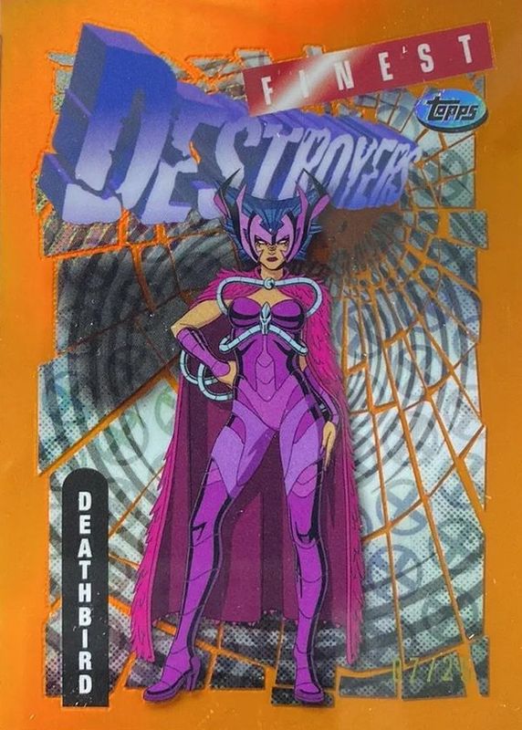 This card is 1 of 9 Deathbird's card variations in the 2025 Topps Finest X-Men 97 set being tracked by Sports Card Investor, including Uncommon, Uncommon - Protector Refractor, Uncommon - Refractor, Uncommon - Laser Refractor /199, and Uncommon - X-Fractor /97.