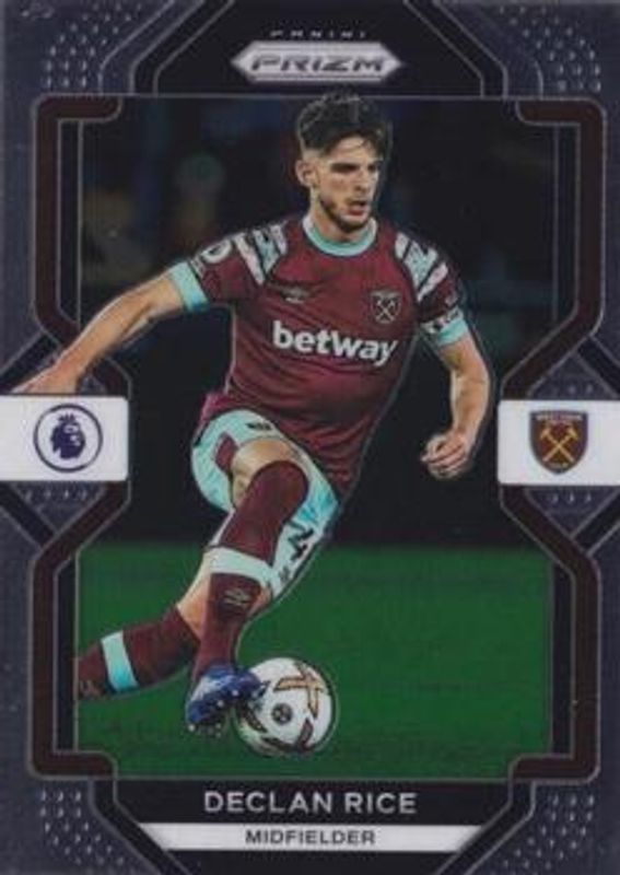 The Declan Rice 2022 Prizm Premier League #46 Base card is 1 of 52 Declan Rice's card variations in the 2022 Prizm Premier League set being tracked by Sports Card Investor, including Breakaway, Choice Blue Yellow Green, Green Ice, Green Pulsar, and Hyper.