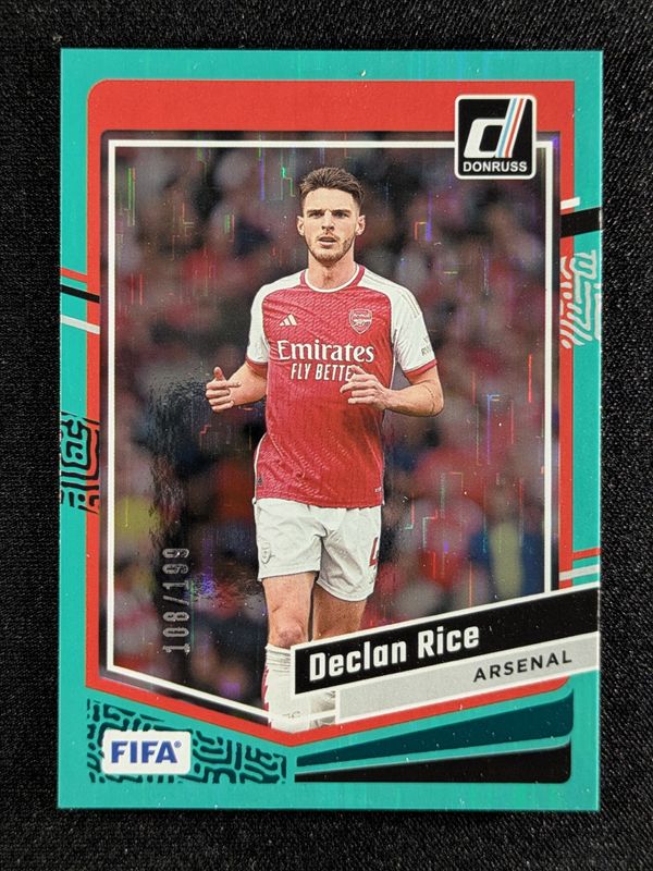 The Declan Rice 2023 Donruss #70 Teal /199 card is 1 of 72 Declan Rice's card variations in the 2023 Donruss set being tracked by Sports Card Investor, including #13 Base, #70 Base, #70 Optic, #13 Optic, and #70 Cubic.