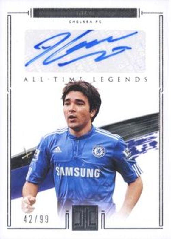 The Deco 2020 Impeccable Premier League #AT-D All Time Legends /99 card is 1 of 20 Deco's card variations in the 2020 Impeccable Premier League set being tracked by Sports Card Investor, including Impeccable Stars /99, Impeccable Stars - Silver /49, All Time Legends - Ruby /35, Impeccable Stars - Ruby /35, and All Time Legends - Silver /25.