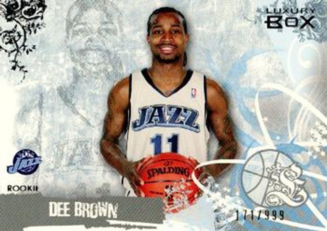 The Dee Brown 2006 Topps Luxury Box #63 Base /999 Rookie card is 1 of 10 Dee Brown's card variations in the 2006 Topps Luxury Box set being tracked by Sports Card Investor, including Red /499, Green /329, Blue /49, Bronze /19, and Silver /9.