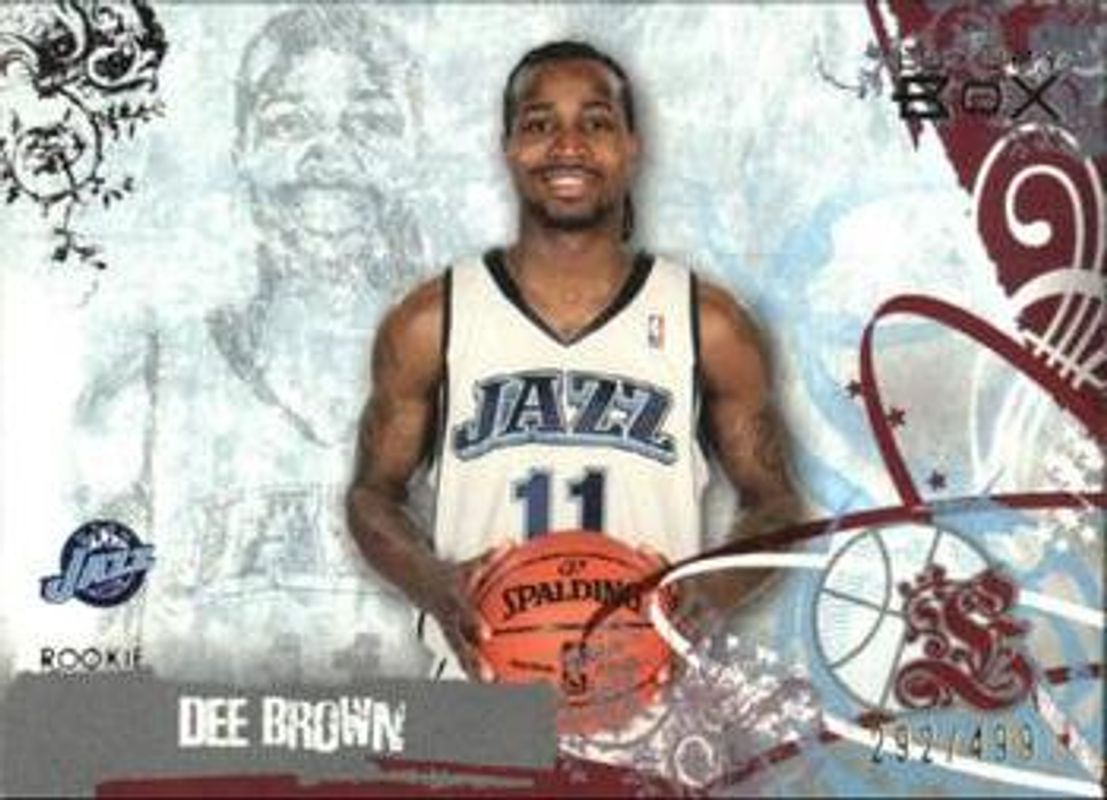 The Dee Brown 2006 Topps Luxury Box #63 Red /499 Rookie card is 1 of 10 Dee Brown's card variations in the 2006 Topps Luxury Box set being tracked by Sports Card Investor, including Base /999, Green /329, Blue /49, Bronze /19, and Silver /9.