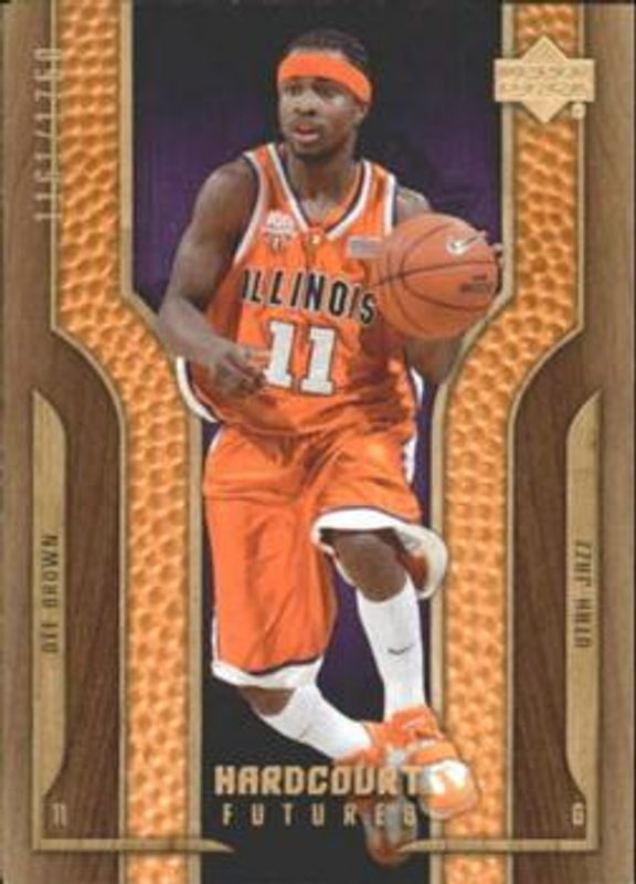 The Dee Brown 2006 Upper Deck Hardcourt #129 Base /1750 Rookie card is 1 of 5 Dee Brown's card variations in the 2006 Upper Deck Hardcourt set being tracked by Sports Card Investor, including Copper /199, Silver /50, Gold /1, and Debut Jerseys /199.