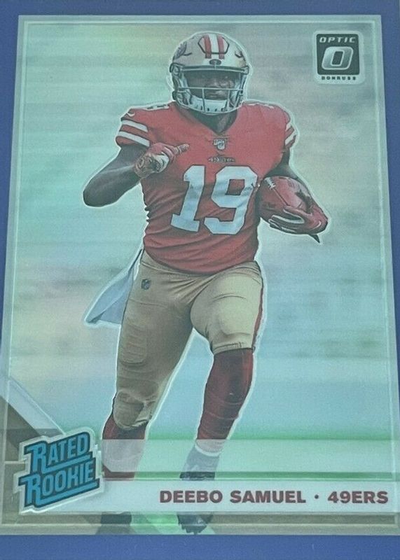 The Deebo Samuel 2019 Optic #167 Purple /50 Rookie card in Raw condition has not changed in price in the last 30 days and was last sold for $35.00 .