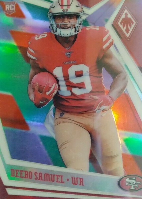 This card is 1 of 13 Deebo Samuel's card variations in the 2019 Phoenix set being tracked by Sports Card Investor, including Base, Fire Burst, Silver, Red /299, and Pink /199.