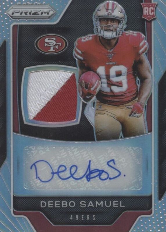 The Deebo Samuel 2019 Prizm #RPA-DE Rookie Patch Auto (/60) card in Raw condition has not changed in price in the last 30 days and was last sold for $45.99 .