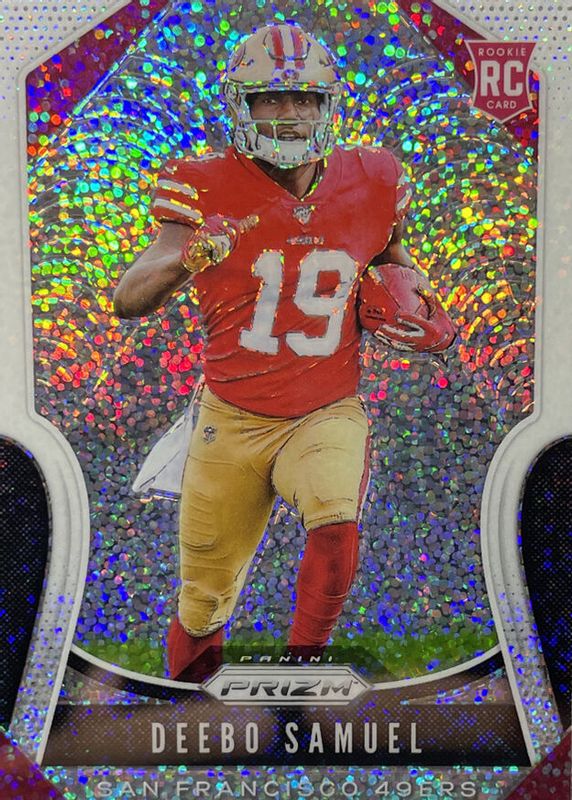 This card is 1 of 44 Deebo Samuel's card variations in the 2019 Prizm set being tracked by Sports Card Investor, including Base, Disco, Green, Lazer, and Neon Green Pulsar.