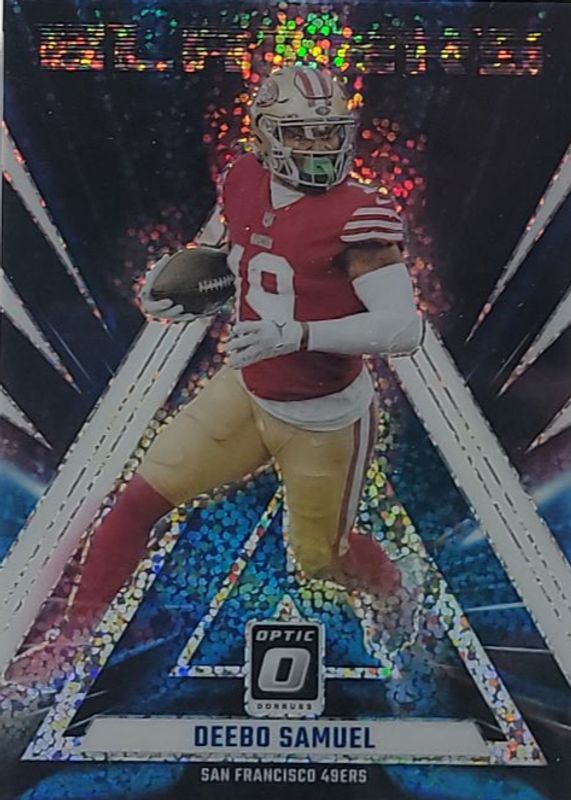 This card is 1 of 5 Deebo Samuel's card variations in the 2023 Optic set being tracked by Sports Card Investor, including Blazers /(SSP), Blazers - Black Pandora /25, Blazers - Gold /10, and Blazers - Gold Vinyl /1.