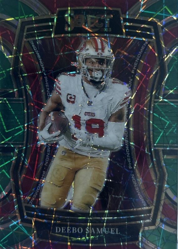 This card is 1 of 9 Deebo Samuel's card variations in the 2023 Select set being tracked by Sports Card Investor, including Color Wheel /(SSP), Phenomenon - Zebra /(SSP), Phenomenon - Tie-Dye /25, Color Wheel - Gold /10, and Phenomenon - Gold /10.