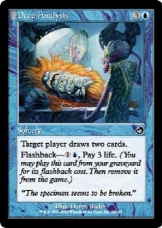 The Deep Analysis 2002 Torment #36 Base card in Raw TCG (Near Mint) condition has moved down -$0.09 (-6.9%) in the last 30 days and was last sold for $1.22 .