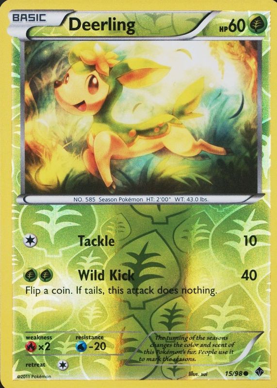 Deerling 2011 Black & White: Emerging Powers #15/98 Reverse Holo RAW TCG (LIGHTLY PLAYED) Price Guide