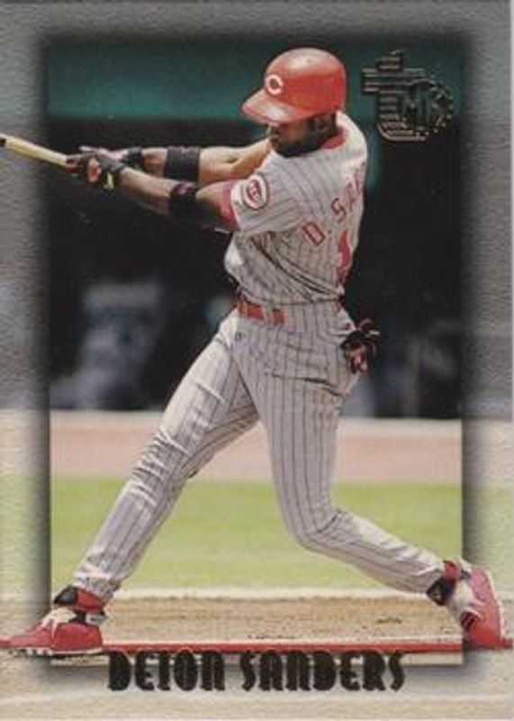 The Deion Sanders 1995 Topps Embossed #12 Base card is 1 of 2 Deion Sanders' card variations in the 1995 Topps Embossed set being tracked by Sports Card Investor, including Golden Idols.
