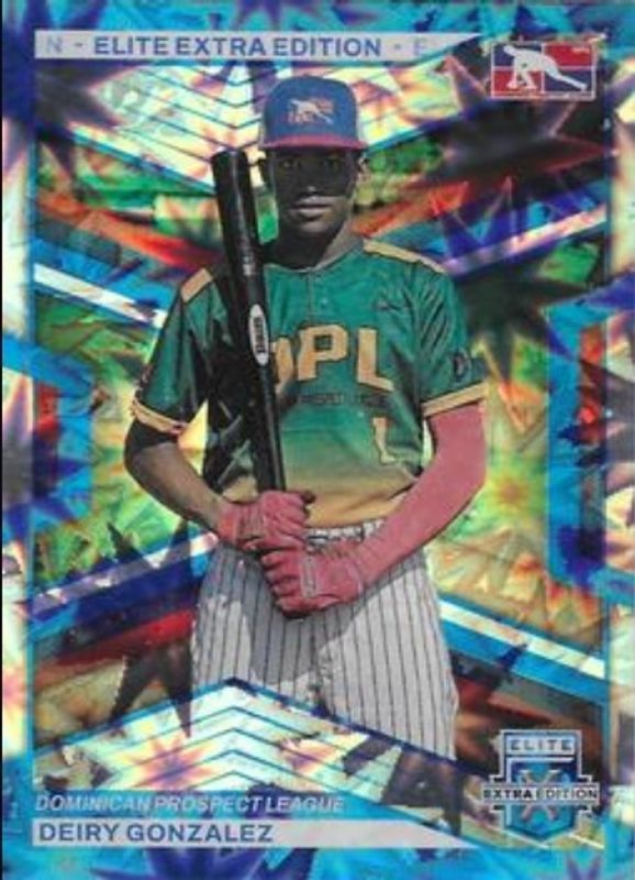 The Deiry Gonzalez 2023 Elite Extra Edition #194 Blue /16 card is 1 of 48 Deiry Gonzalez's card variations in the 2023 Elite Extra Edition set being tracked by Sports Card Investor, including Base, Pink, Signatures, Status Green /499, and Signatures die-cut /399.