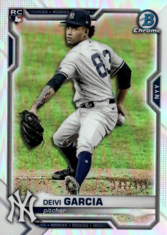 This card is 1 of 12 Deivi Garcia's card variations in the 2021 Bowman Chrome set being tracked by Sports Card Investor, including Base, Pink Refractor /299, Purple Refractor /250, Fuchsia Refractor /199, and Blue Refractor /150.