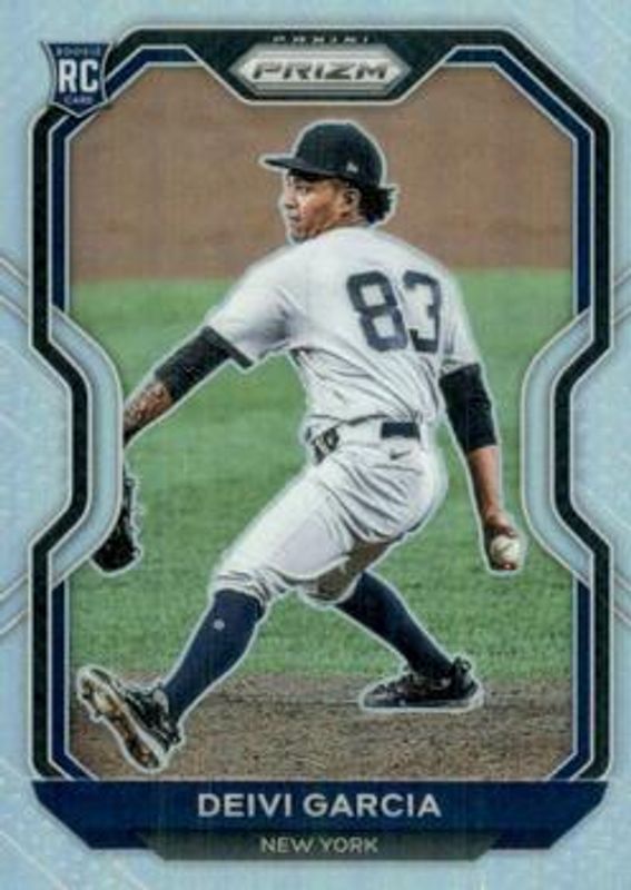 The Deivi Garcia 2021 Prizm #6 Silver Rookie card is 1 of 74 Deivi Garcia's card variations in the 2021 Prizm set being tracked by Sports Card Investor, including Base, Blue, Blue Velocity, Carolina Blue, and Cosmic Haze.