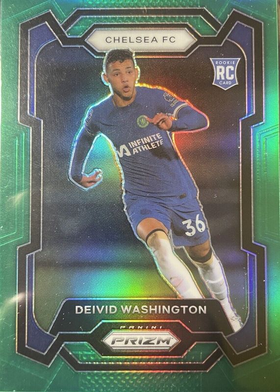 The Deivid Washington 2023 Prizm Premier League #199 Green /5 Rookie card in Raw condition has not changed in price in the last 30 days and was last sold for $132.50 .