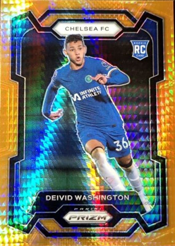 The Deivid Washington 2023 Prizm Premier League #199 Orange Hyper Rookie card in Raw condition has not changed in price in the last 30 days and was last sold for $1.75 .