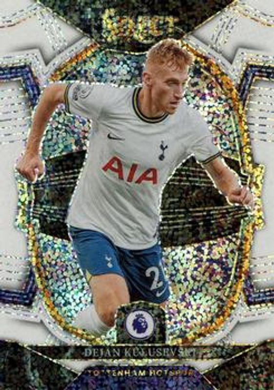 The Dejan Kulusevski 2022 Select Premier League #89 White Sparkle card is 1 of 88 Dejan Kulusevski's card variations in the 2022 Select Premier League set being tracked by Sports Card Investor, including #228 Base, #89 Base, #228 Blue, #89 Blue, and #228 Checkerboard.
