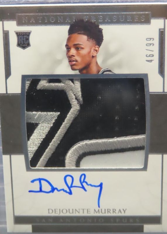 The Dejounte Murray 2016 National Treasures #146 Rookie Patch Auto /99 card in Raw condition has not changed in price in the last 30 days and was last sold for $1,236.97 .