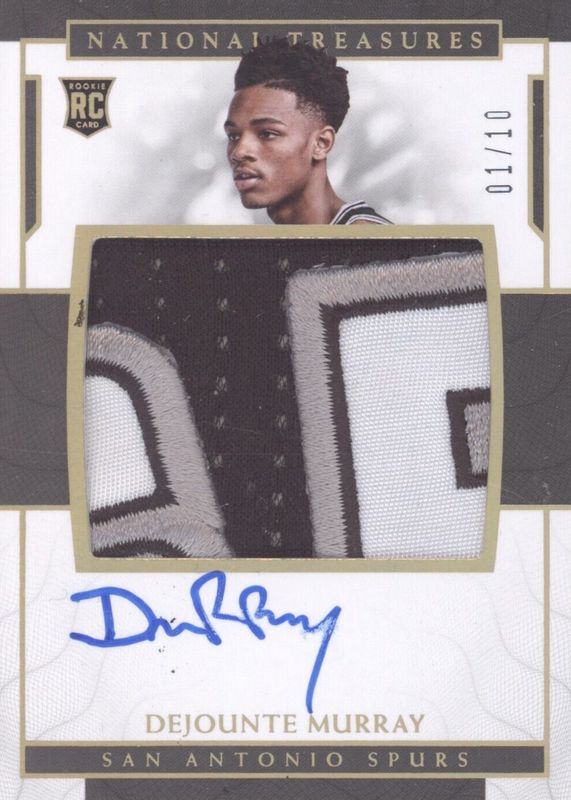 The Dejounte Murray 2016 National Treasures #146 Rookie Patch Auto - Gold /10 card in Raw condition has not changed in price in the last 30 days and was last sold for $1,324.00 .