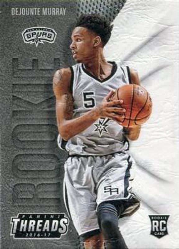 The Dejounte Murray 2016 Threads #212 Base Rookie card is 1 of 16 Dejounte Murray's card variations in the 2016 Threads set being tracked by Sports Card Investor, including #249 Base, #283 Base, #194 Base, #194 Century Proof Dazzle, and #194 Century Proof Holo.