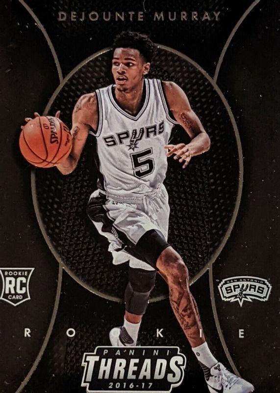 The Dejounte Murray 2016 Threads #283 Micro Etch Rookie card in Raw condition has not changed in price in the last 30 days and was last sold for $3.69 .