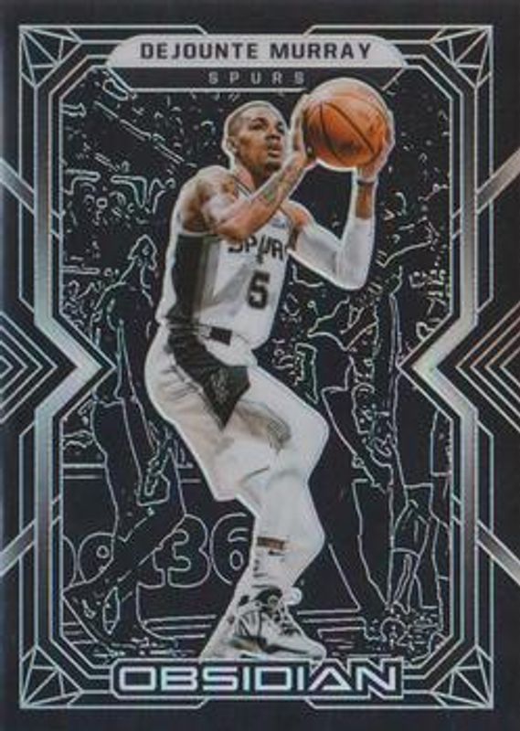 The Dejounte Murray 2021 Obsidian #10 Base card is 1 of 28 Dejounte Murray's card variations in the 2021 Obsidian set being tracked by Sports Card Investor, including Electric Etch Asia, Electric Etch Blue Flood, Electric Etch Red Flood, Electric Etch White Pulsar, and Electric Etch Yellow Flood.