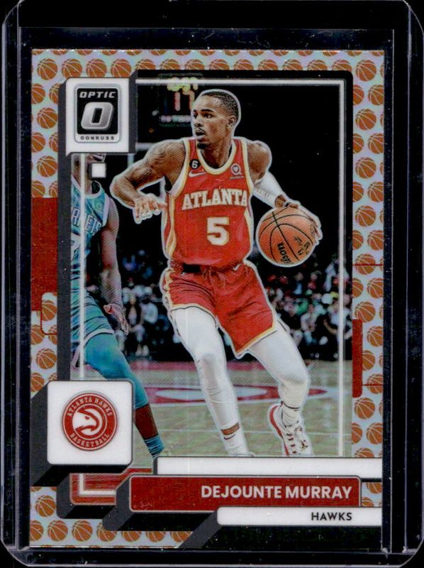 The Dejounte Murray 2022 Optic #138 Basketballs /(SSP) card is 1 of 71 Dejounte Murray's card variations in the 2022 Optic set being tracked by Sports Card Investor, including Base, Checkerboard, Choice Red & Green, Fast Break, and Green Shock.