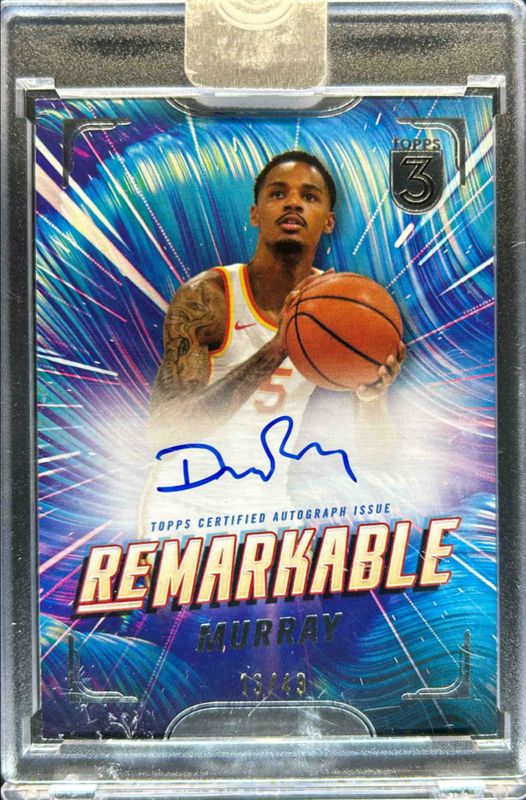 The Dejounte Murray 2023 Topps Three #RM-DM Re-Markable /49 card is 1 of 16 Dejounte Murray's card variations in the 2023 Topps Three set being tracked by Sports Card Investor, including Base /49, Bronze /25, Gold /10, Red /5, and Platinum /1.