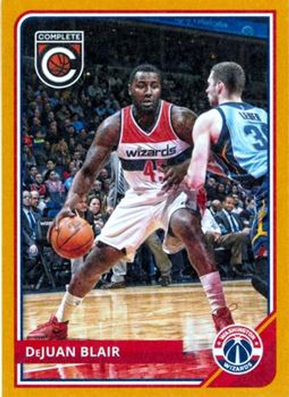The DeJuan Blair 2015 Complete #144 Gold card is 1 of 3 DeJuan Blair's card variations in the 2015 Complete set being tracked by Sports Card Investor, including Base, and Silver.