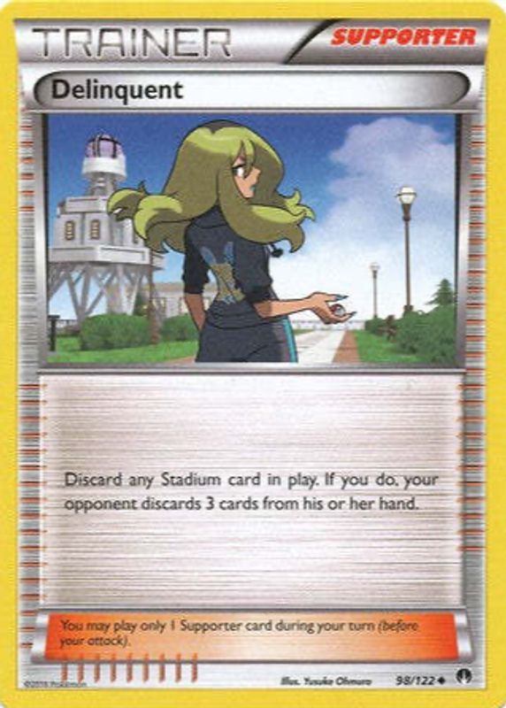 The Delinquent 2016 XY: BREAKpoint #098/122 Base card in Raw TCG (Near Mint) condition has moved down -$0.70 (-39.1%) in the last 30 days and was last sold for $1.09 .