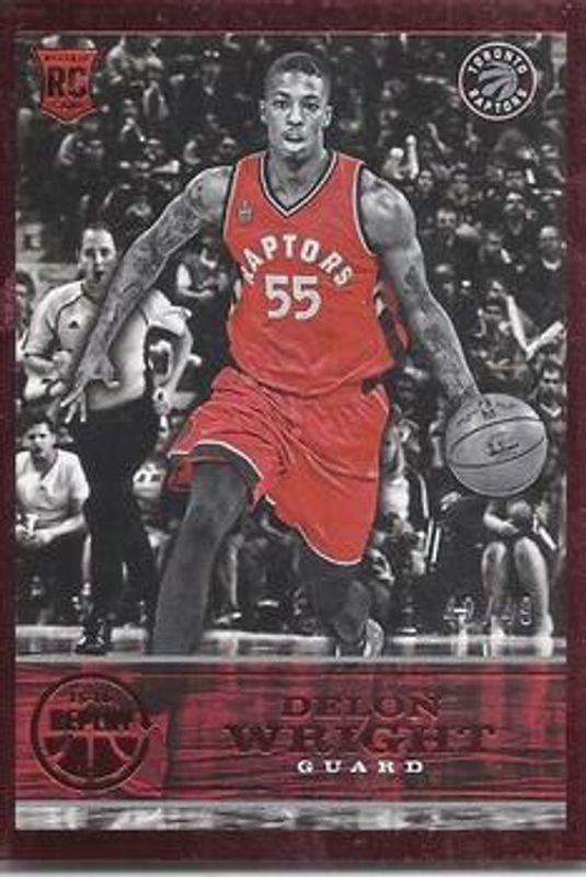 The Delon Wright 2015 Replay #98 Red /49 Rookie card is 1 of 20 Delon Wright's card variations in the 2015 Replay set being tracked by Sports Card Investor, including #98 Base /99, #23 Base /99, #48 Base /99, #73 Base /99, and #73 Red /49.