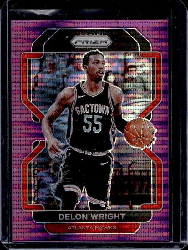 The Delon Wright 2021 Prizm #57 Purple Pulsar /35 card is 1 of 60 Delon Wright's card variations in the 2021 Prizm set being tracked by Sports Card Investor, including Base, Blue NBA 75th Anniversary, Blue Wave, Choice Blue Yellow Green, and Factory Set Blue Hyper.